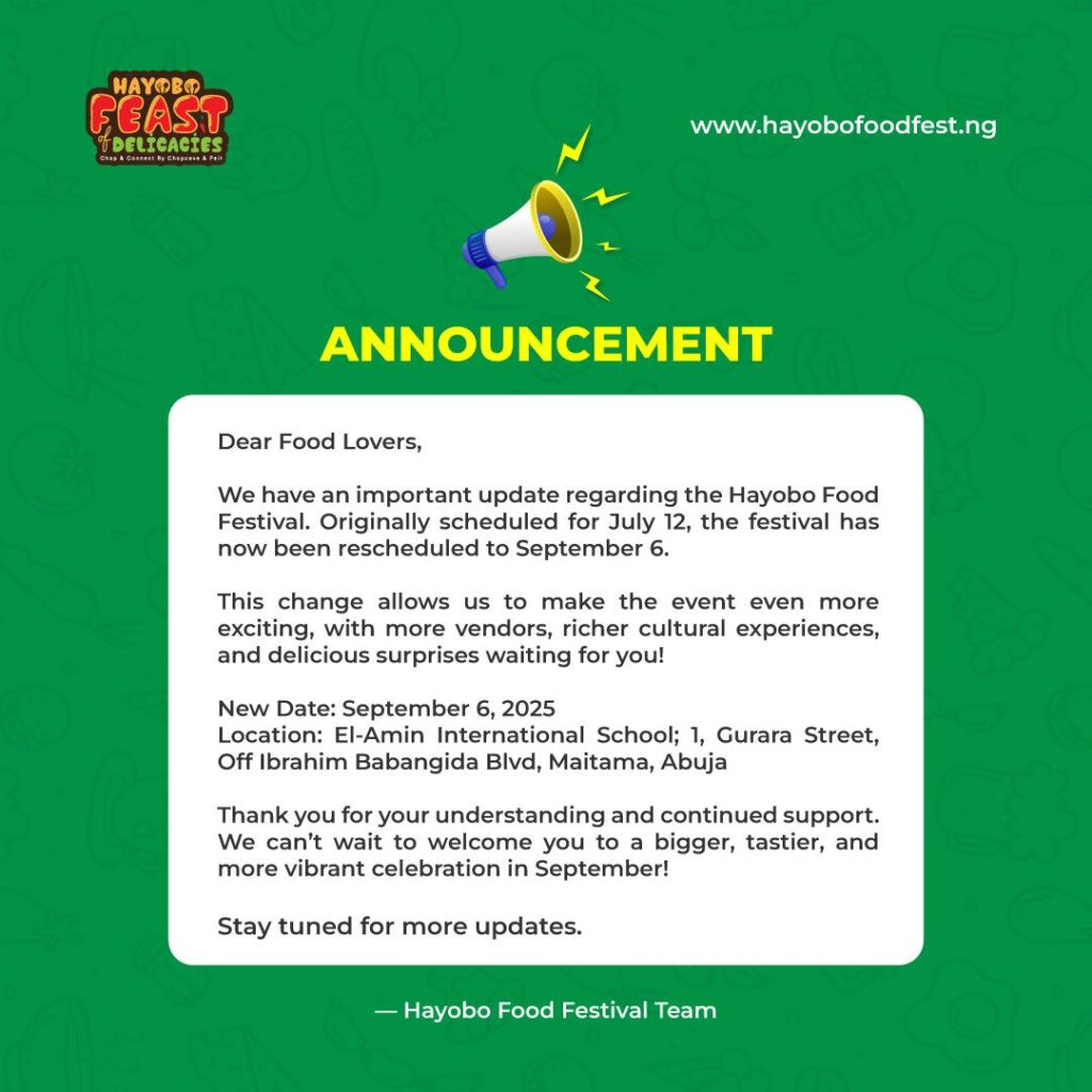 The Hayobo Food Festival: Dine & Network is a premier culinary and networking experience designed to bring together influential Nigerians living in Abuja. The event aims to create a vibrant atmosphere for fine dining, meaningful connections and cultural celebration. The food fest will showcase diverse cuisines, exquisite hospitality, and entertainment all in one